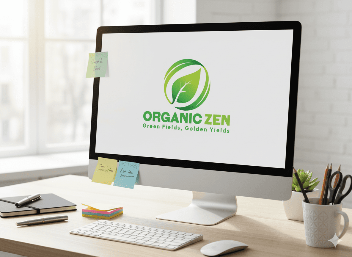 A professional logo design for "Organic Zen," featuring a stylized green leaf within a circular, flowing emblem. The clean lines and fresh color palette evoke a sense of natural purity, growth, and tranquility. The design is ideal for businesses in the health, wellness, or organic product sectors.