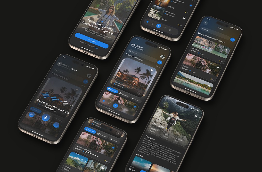 A modern, visually engaging travel application designed to help users discover, book, and explore destinations effortlessly. The app integrates search, personalized recommendations, and booking functionalities in an intuitive, minimal UI with a focus on rich imagery and accessibility.